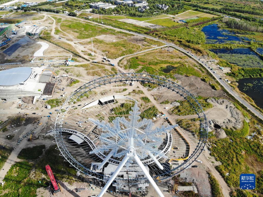 這是9月7日拍攝的哈爾濱冰雪大世界摩天輪(無人機照片)。 新華社記者 王松 攝