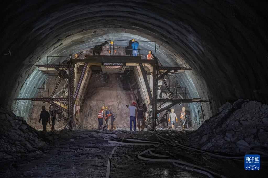 9月7日,在中鐵八局承建的武兩高速公路一標段平橋隧道內,工人在掌子面作業。