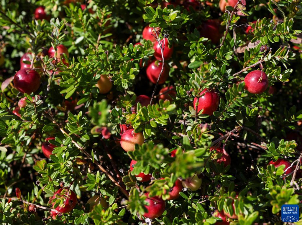 這是9月4日在撫遠市紅海植業有限公司蔓越莓種植基地內拍攝的成熟的蔓越莓。