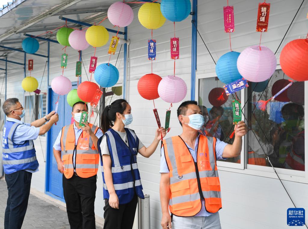 9月7日,工友在中建二局招商西永項目部參與猜燈謎活動。