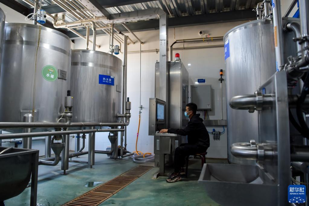 9月7日,在位于托克托縣的內蒙古恒富牧業第三牧場,工人在查看擠奶設備運行情況。