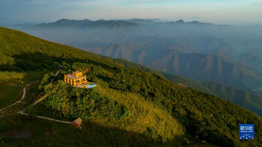 一縷朝陽照耀著漢江源風景區茂密的森林(9月7日攝,無人機照片)。這里生物的多樣性與森林的季節變化造就了原始森林、竹林、杜鵑花海和秋山紅葉等豐富景觀,吸引眾多游客。