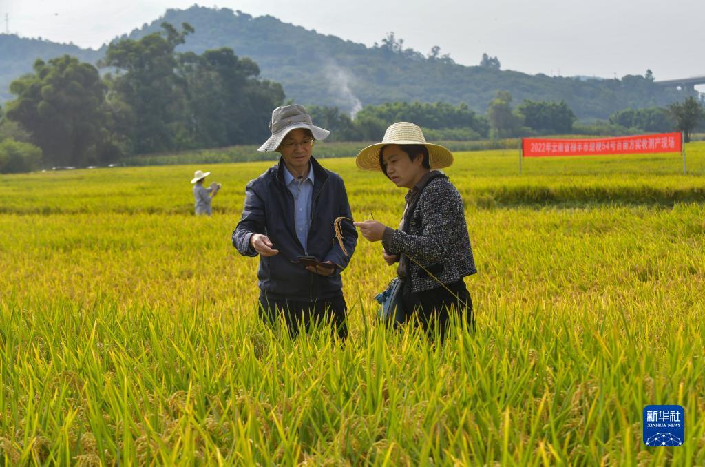 當日,農業農村部專家組在云南楚雄州祿豐市金山鎮官洼社區,對楚雄州農科院高原粳稻育種團隊選育的水稻新品種“楚粳54號”進行實產驗收。經實地測產,“楚粳54號”最終平均畝產達954.9千克。