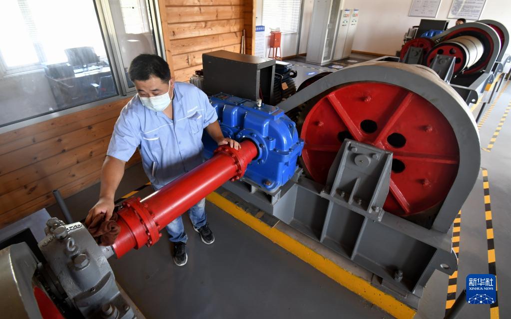 9月8日,技術人員在養護阜石路西郊雨洪調蓄工程的閘門起降設施。