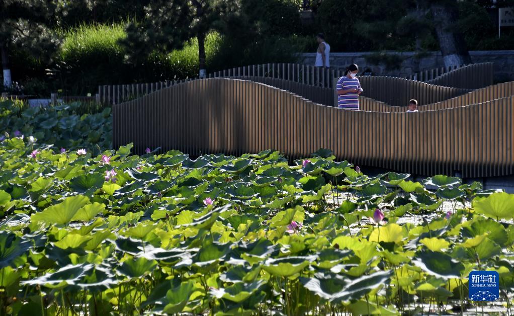 9月5日,市民在龍潭西湖湖畔休閑。龍潭西湖湖底新建了一座總容積9萬立方米的調蓄池,通過硅砂蜂巢調蓄凈化系統對來水水質進行處理。