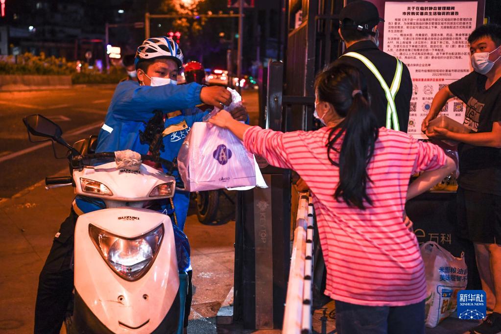 9月7日夜,快遞員在貴陽市云巖區給市民配送生活物資。