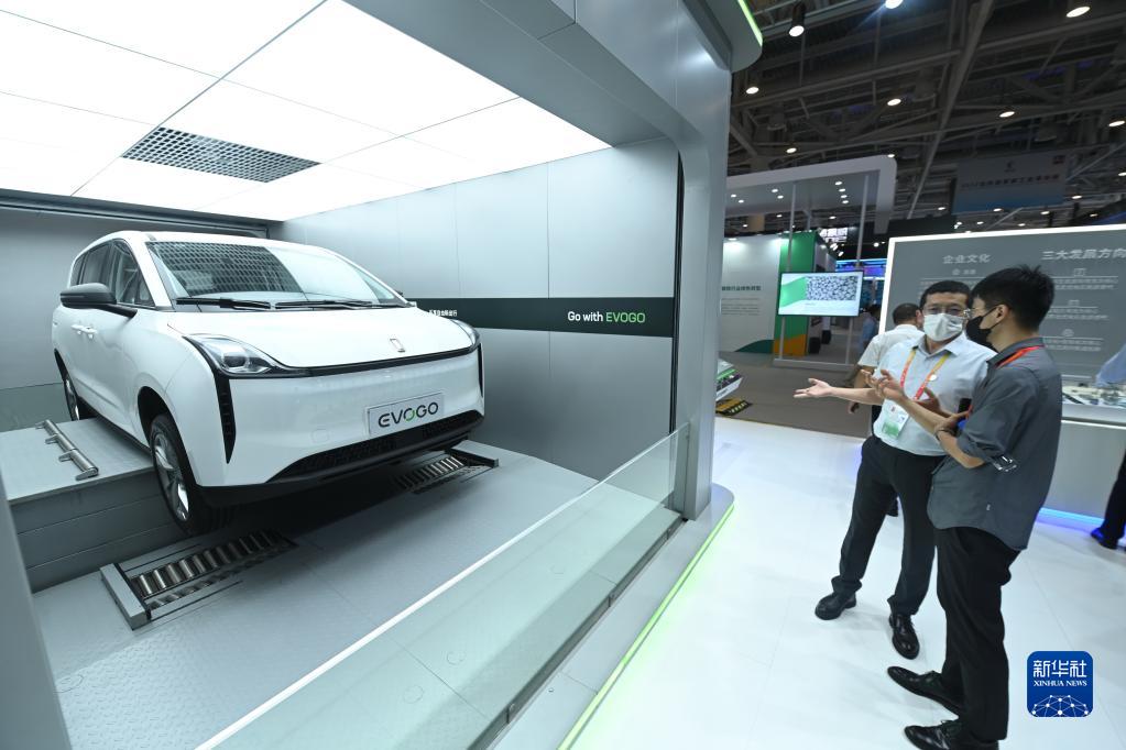 9月8日,參觀者在第二十二屆投洽會寧德時代展位,參觀新能源汽車換電過程。