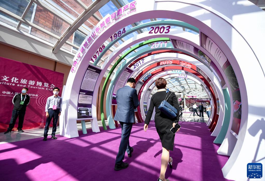 9月7日,參觀者在賀蘭山葡萄酒展銷會現場參觀。