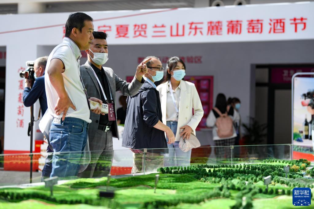 9月7日,參觀者在賀蘭山葡萄酒展銷會現場了解寧夏葡萄酒產業發展情況。
