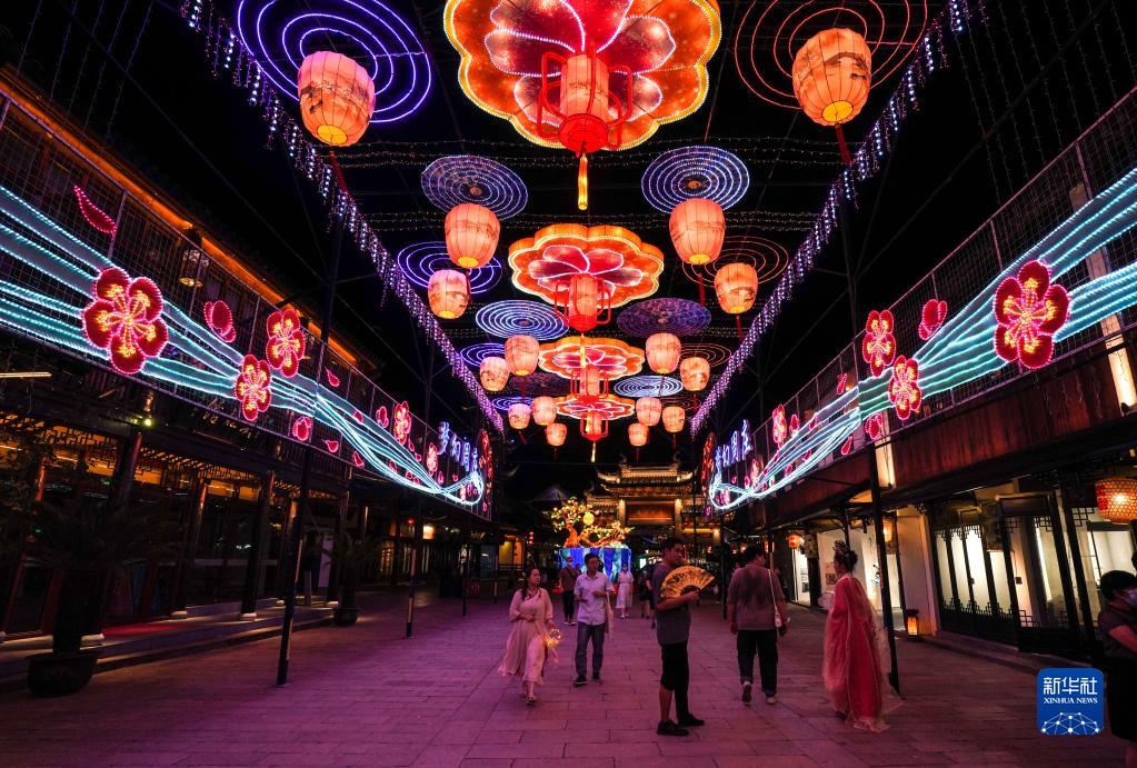9月8日,2022海峽兩岸(昆山)中秋燈會在江蘇省昆山市周莊古鎮舉行亮燈儀式,本屆燈會以“花開并蒂 燈映兩岸”為主題,即日起至10月7日在周莊、錦溪等四個燈區展出。新華社記者 楊磊 攝