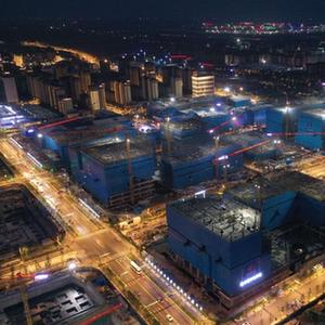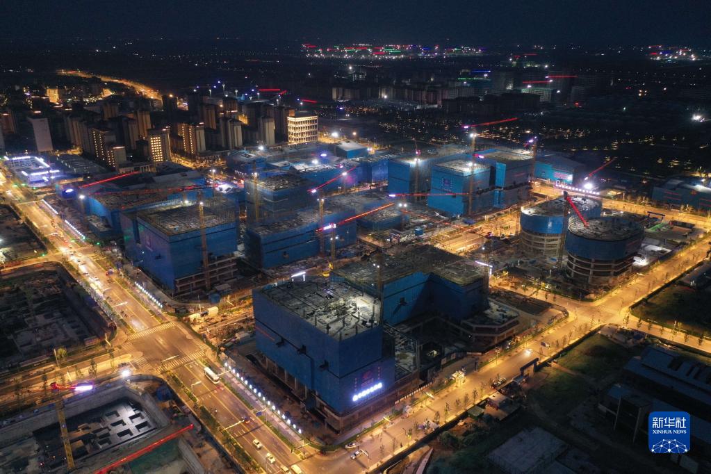 雄安新區容東片區雄安·電建智匯城建設項目夜景(2022年8月17日攝,無人機照片)。