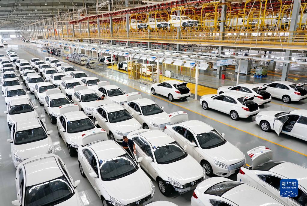 工人在位于河北省黃驊市的北京新能源汽車股份有限公司黃驊分公司生產車間工作(2019年7月6日攝)。