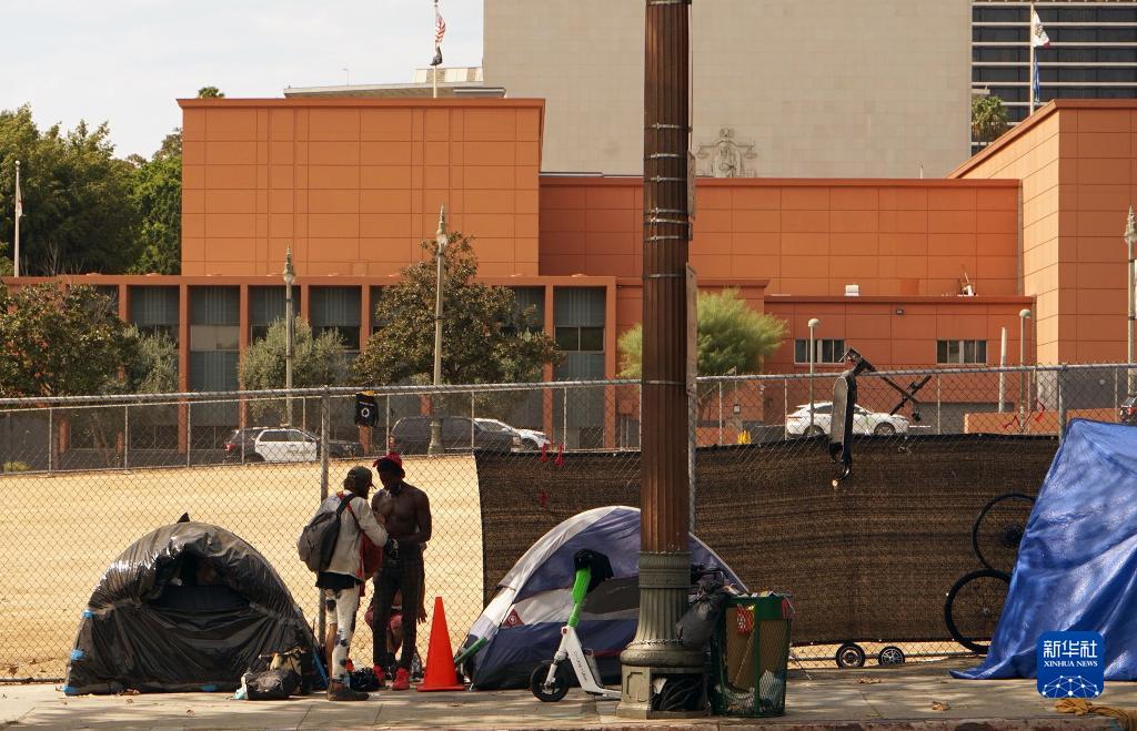 9月8日,在美國加利福尼亞州洛杉磯市區,街頭可見多個無家可歸者的帳篷。