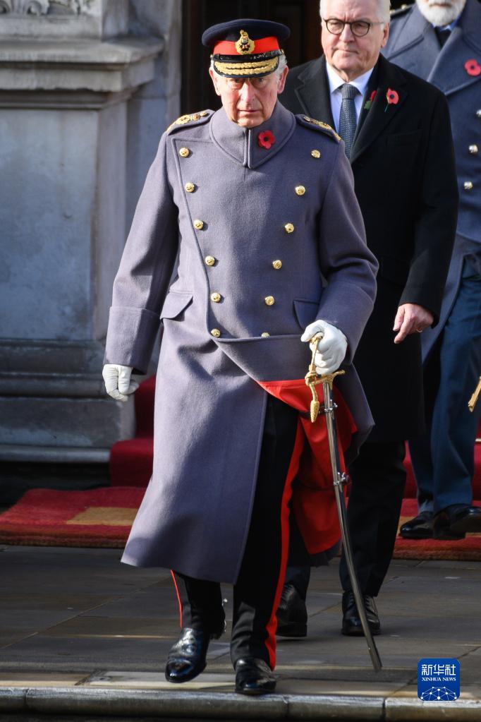 這是2018年11月11日在英國倫敦拍攝的查爾斯(前)參加紀念第一次世界大戰停戰100周年活動的資料照片。