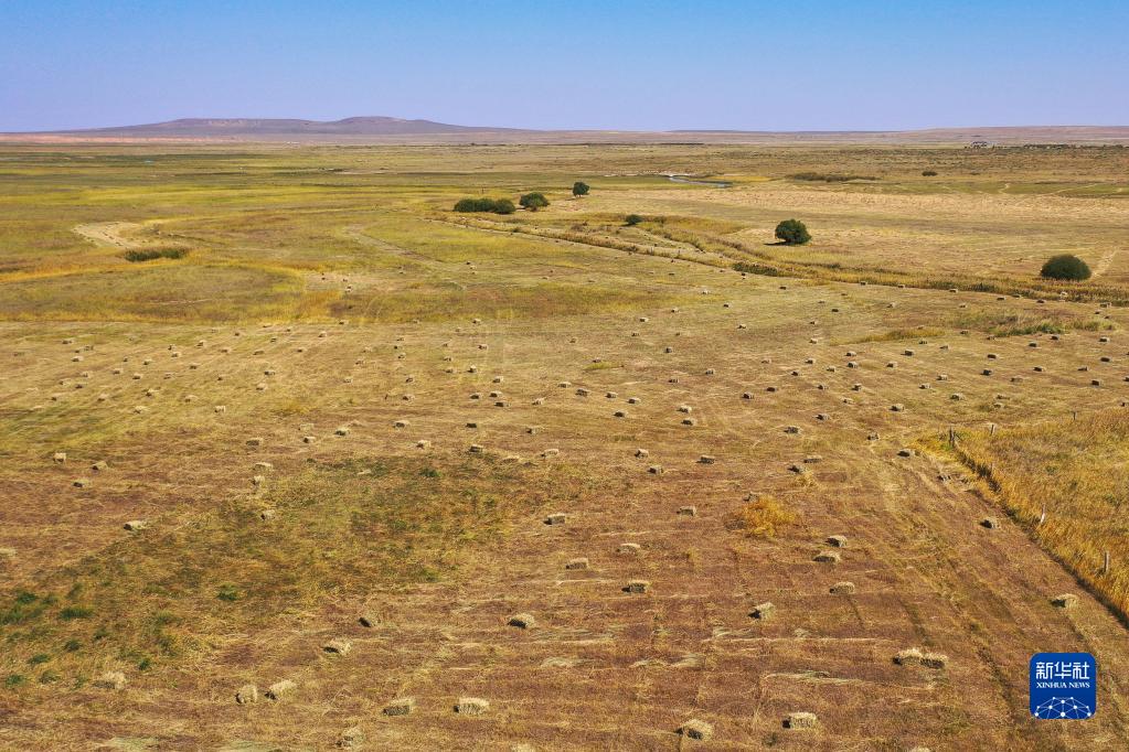 秋日時節,在內蒙古錫林郭勒盟阿巴嘎旗牧區的草原上,牧民開始打草,儲備越冬草料。