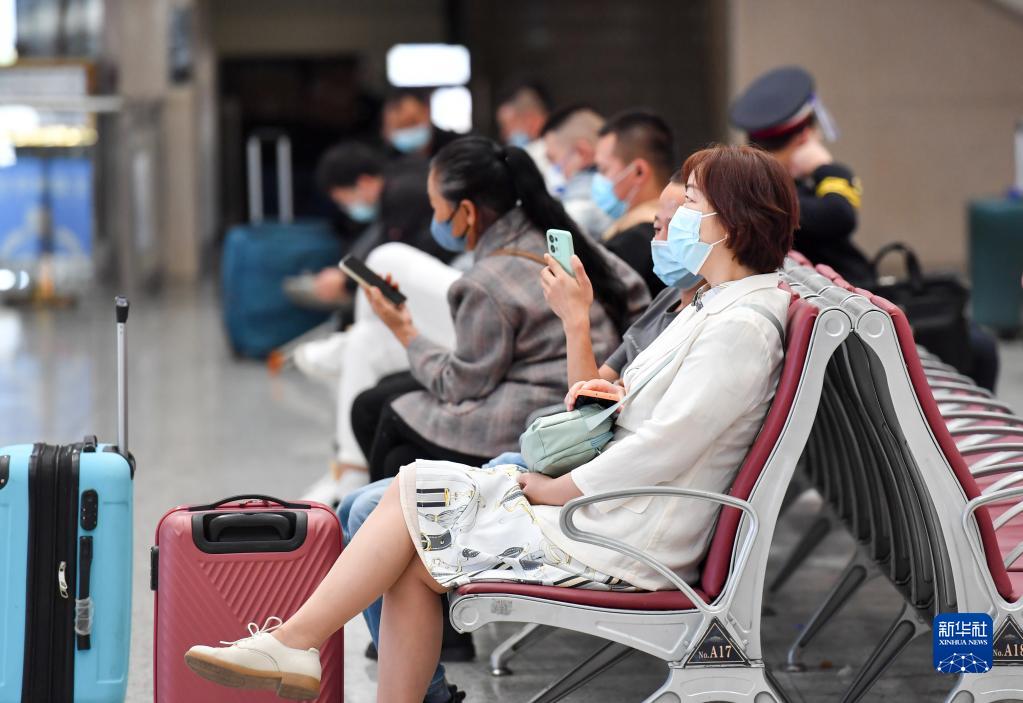 9月9日,在哈爾濱西站,旅客在大廳候車等待。