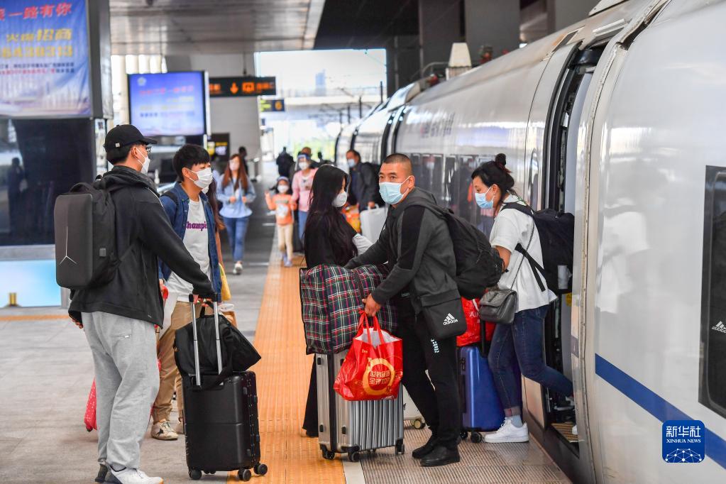 9月9日,在哈爾濱西站站臺,旅客上下列車。