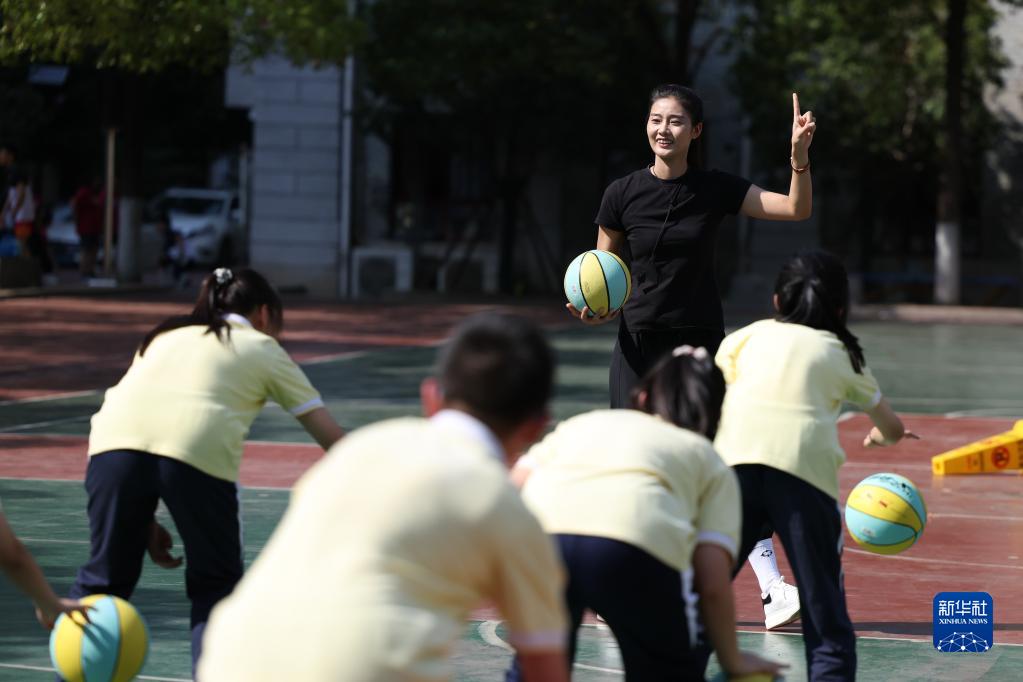 9月6日,于紅?。ê螅┰陂L沙市明德華興中學給學生上體育課。