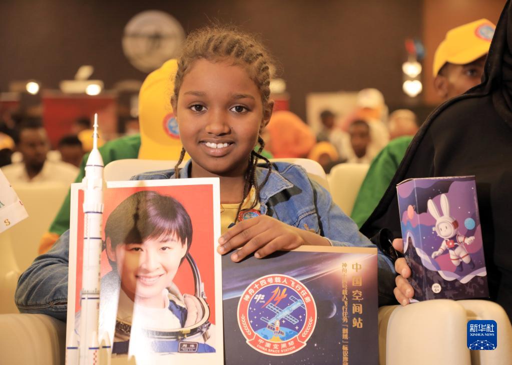 2022年9月6日,在索馬里首都摩加迪沙的“天宮對話”活動索馬里分會場,當地學生展示活動紀念品。來自埃塞俄比亞、埃及等非洲8國的青少年當日通過網絡視頻與正在中國空間站執行任務的神舟十四號航天員進行“天宮對話”活動。當天活動的主會場設在位于埃塞俄比亞首都亞的斯亞貝巴的非洲聯盟(非盟)委員會總部,并在阿爾及利亞、埃及、埃塞俄比亞、納米比亞、尼日利亞、塞內加爾、索馬里和南非共8個國家設立分會場,來自中非各界近千人出席。