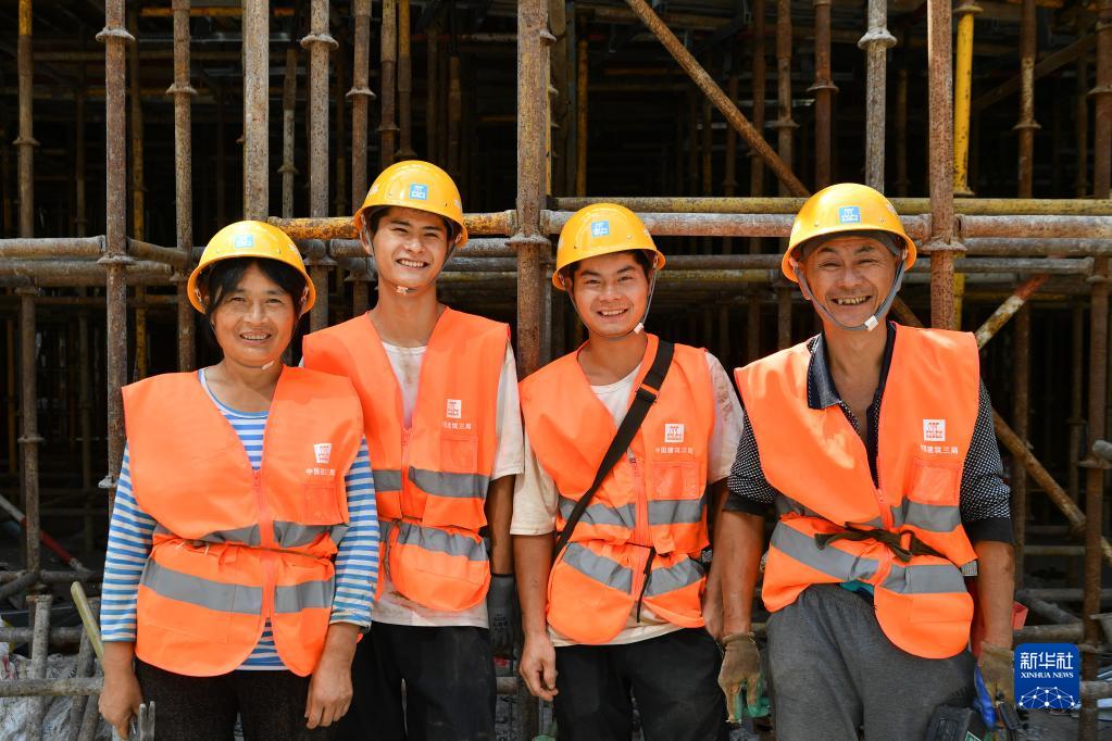 9月9日,張志軍(右一)與妻子陳瓊賢(左一)、大兒子張勁松(右二)、小兒子張虎在工地合影。