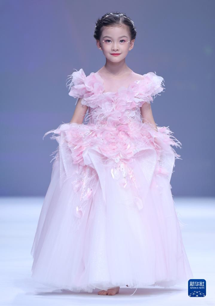 9月9日,小模特在北京中國國際時裝周(2023春夏系列)舉行的“AMORCODE”童裝發布會上展示童裝。