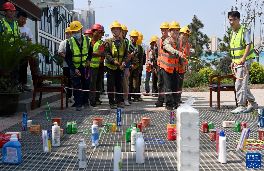 9月9日,在中建二局陜西分公司咸陽高鐵新城項目部,建設者在進行趣味游戲。