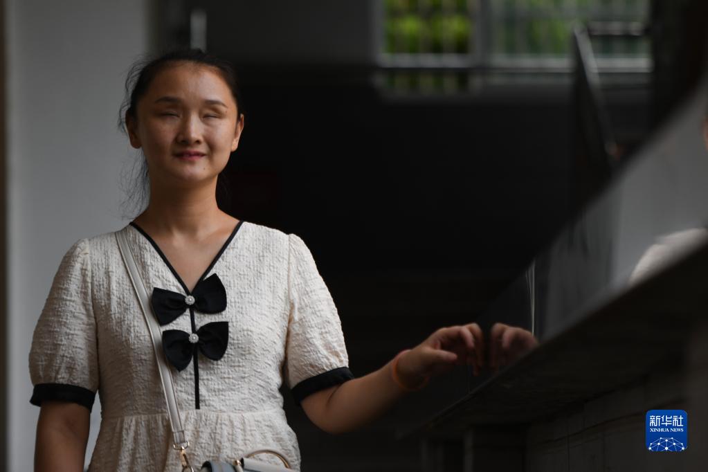 9月8日,在安慶市特殊教育學校,張晨在課間準備回到辦公室。