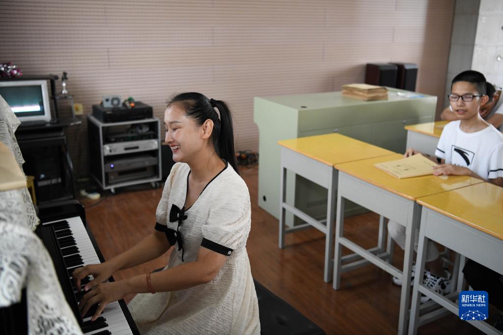 9月7日,在安慶市特殊教育學校音樂教室里,張晨給盲生們上音樂課。