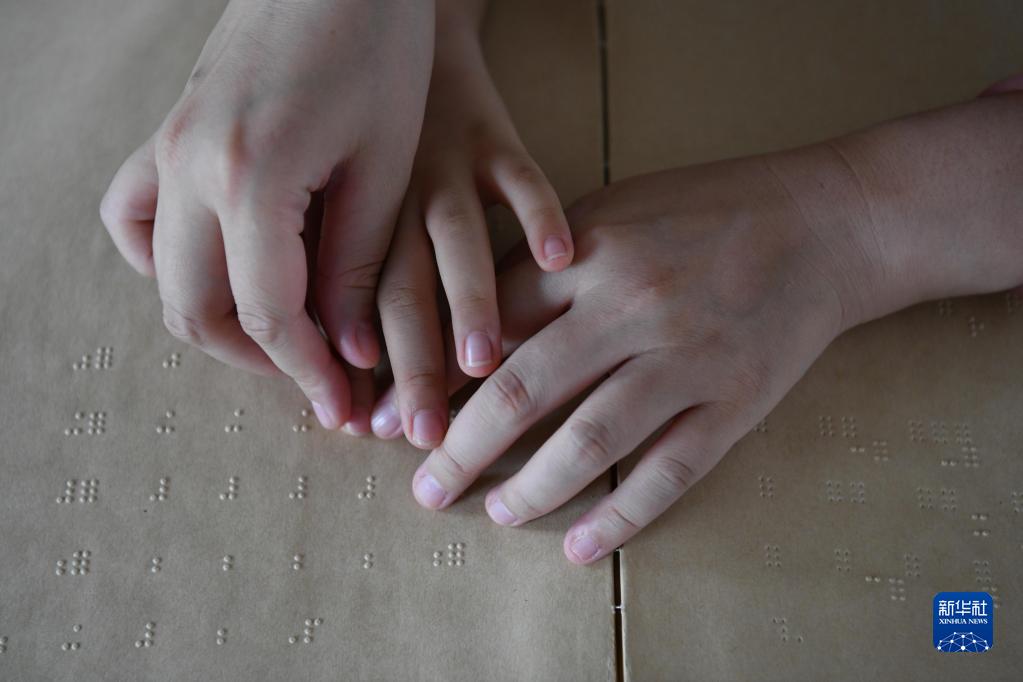 9月7日,張晨在安慶市特殊教育學校教學生盲文。