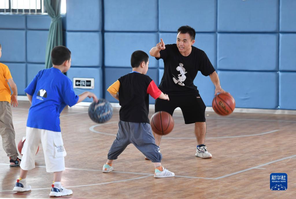福州市星語學校教師聶親水在運動與保健課堂上指導學生運球(9月7日攝)。