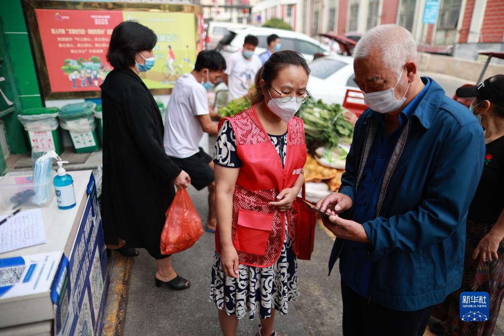 9月9日,市民在貴陽市觀山湖區碧海社區內掃碼進入菜市場。