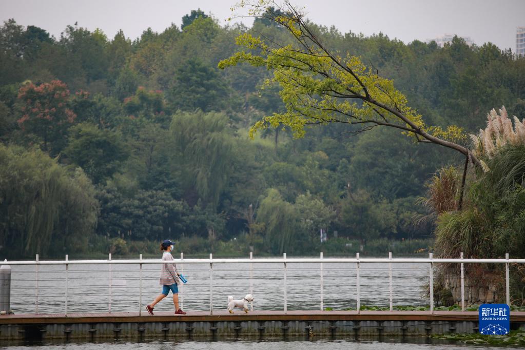 9月9日,市民在貴陽市觀山湖區閱山湖公園內游玩。