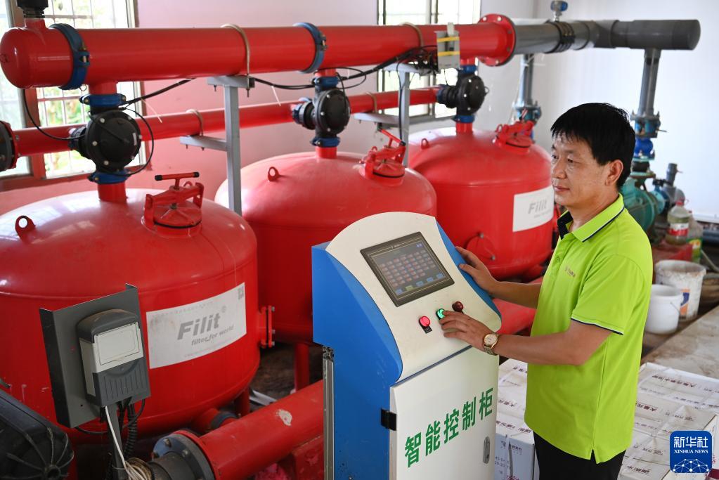 9月9日,陜西齊峰果業城固基地員工在操作數字化水肥一體化系統,為獼猴桃園施肥。
