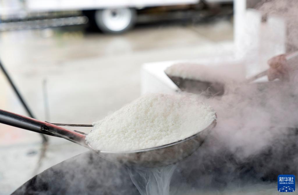 9月9日,在石棉縣新民鄉海耳村臨時安置點,村民志愿者在做飯。