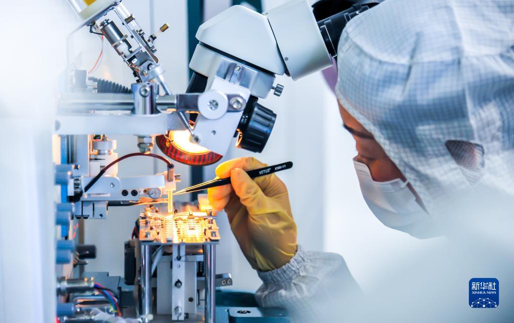 山西中科潞安紫外光電科技公司技術人員在工作(2020年3月11日攝)。新華社發