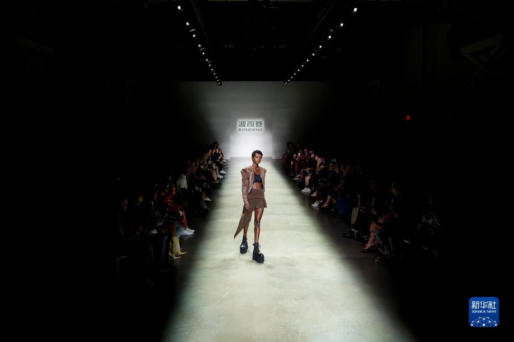 9月9日,模特在美國紐約舉行的紐約時裝周上展示波司登品牌2023春夏系列服飾。