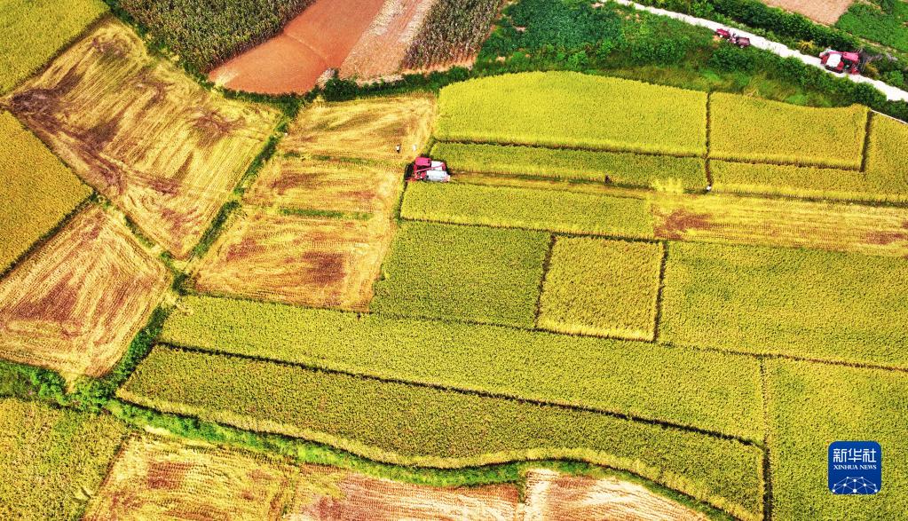 近日,陜西省漢中市洋縣17.3萬畝水稻喜獲豐收,鄉村田野處處飄散著稻谷的芬香。
