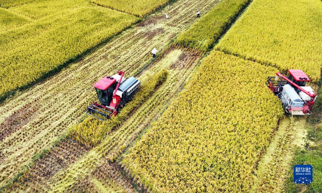 近日,陜西省漢中市洋縣17.3萬畝水稻喜獲豐收,鄉村田野處處飄散著稻谷的芬香。