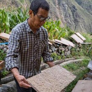 生活在四川省木里藏族自治縣納西族古村寨俄亞大村的英扎次里,是東巴文化省級非遺傳承人。通過不斷研究摸索,他逐漸掌握納西東巴古法造紙技藝。