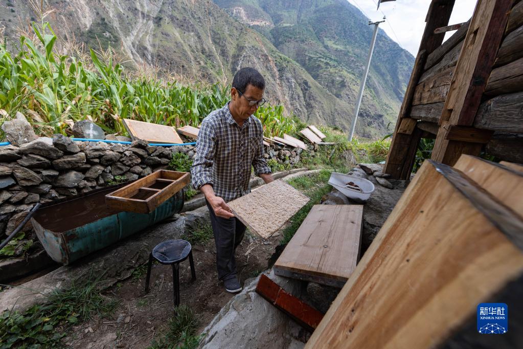 生活在四川省木里藏族自治縣納西族古村寨俄亞大村的英扎次里,是東巴文化省級非遺傳承人。通過不斷研究摸索,他逐漸掌握納西東巴古法造紙技藝。