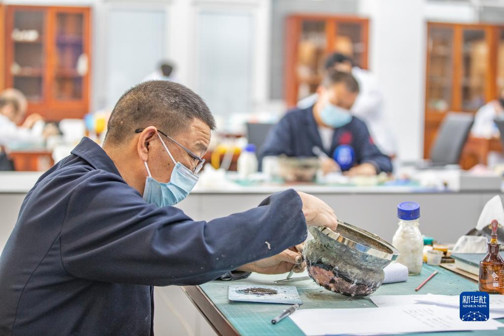 9月9日,參賽人員在進行金屬文物修復技能比賽。