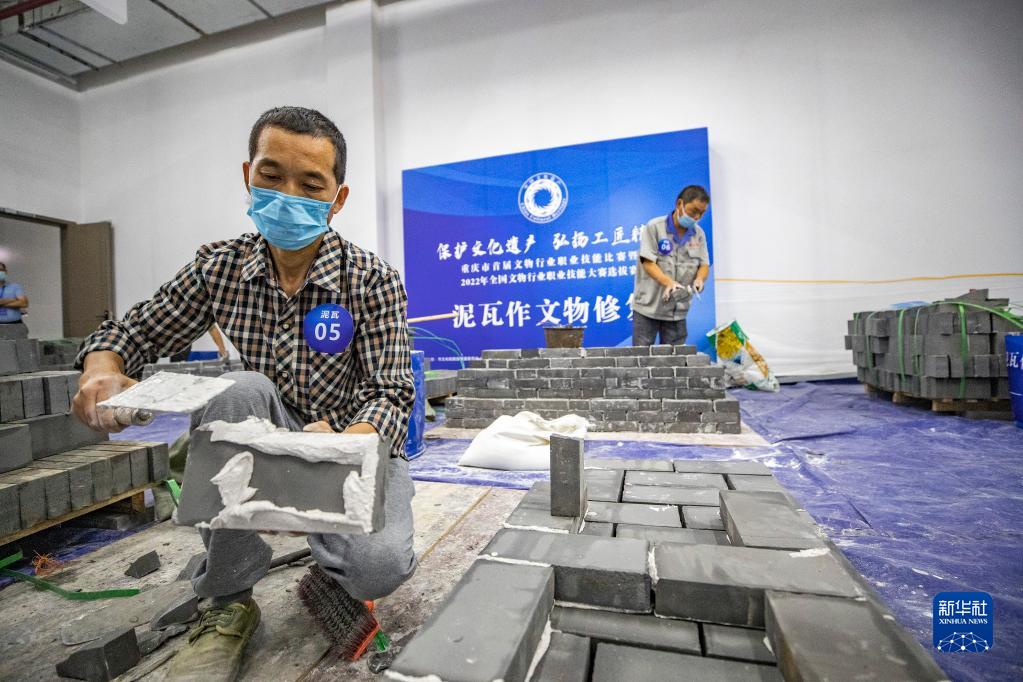 9月9日,參賽人員在進行泥瓦作文物修復技能比賽。