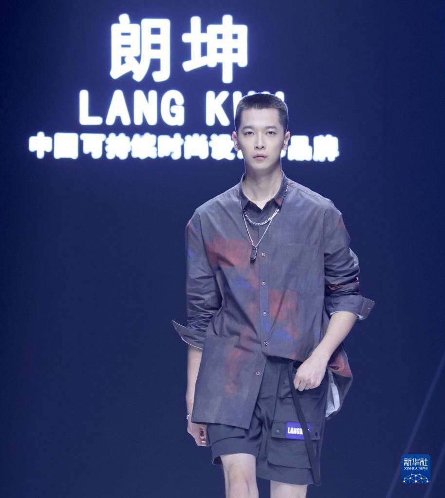 當日,主題為“文脈承續·中國染”的“朗坤·黃剛” 時裝發布會在北京中國國際時裝周(2023春夏系列)上舉行,推出38套最新時裝。設計師在這些時裝上運用了扎染、吊染、蠟染等中國傳統染色工藝,并結合了現代數碼印花、3D打印針織技術,選用生物基纖維、再生環保纖維、可持續發展面料。