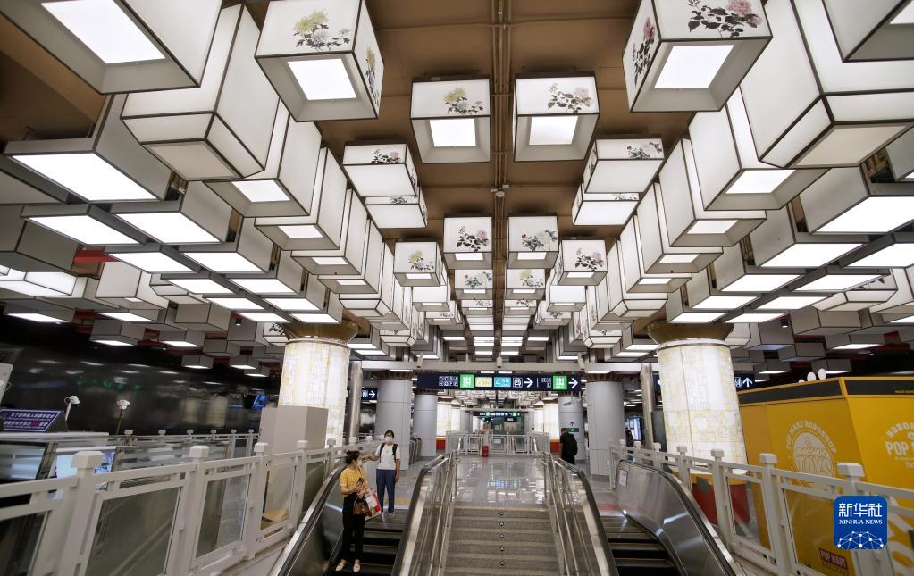 融入中國傳統宮燈等元素的北京地鐵19號線站臺(9月9日攝)。