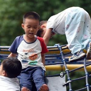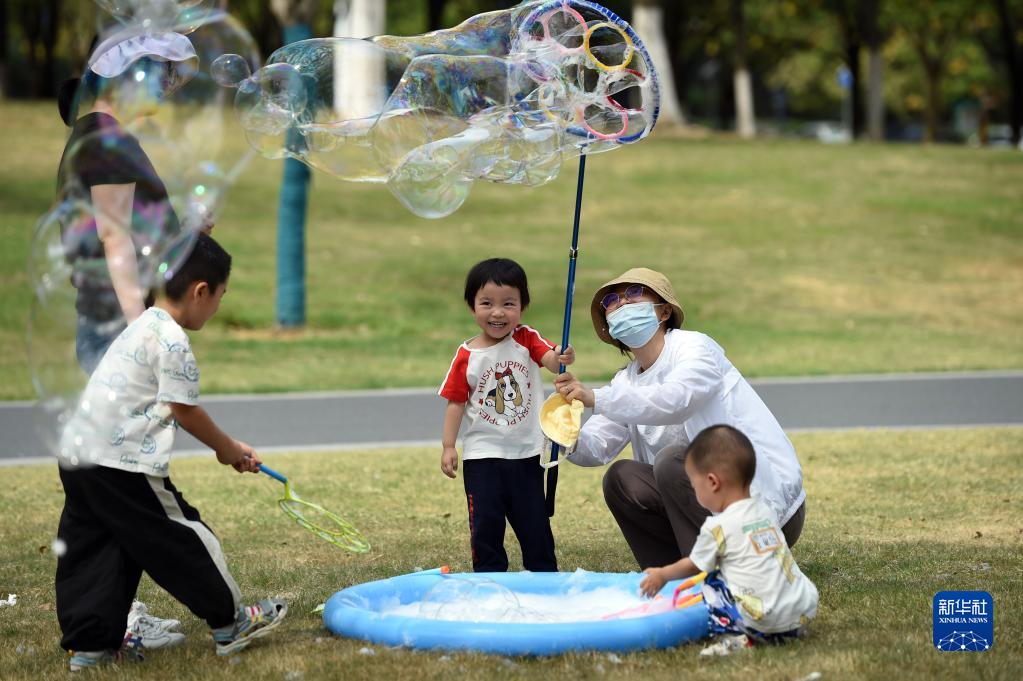 9月10日,市民帶著小朋友在安徽省合肥市綠軸公園玩耍。