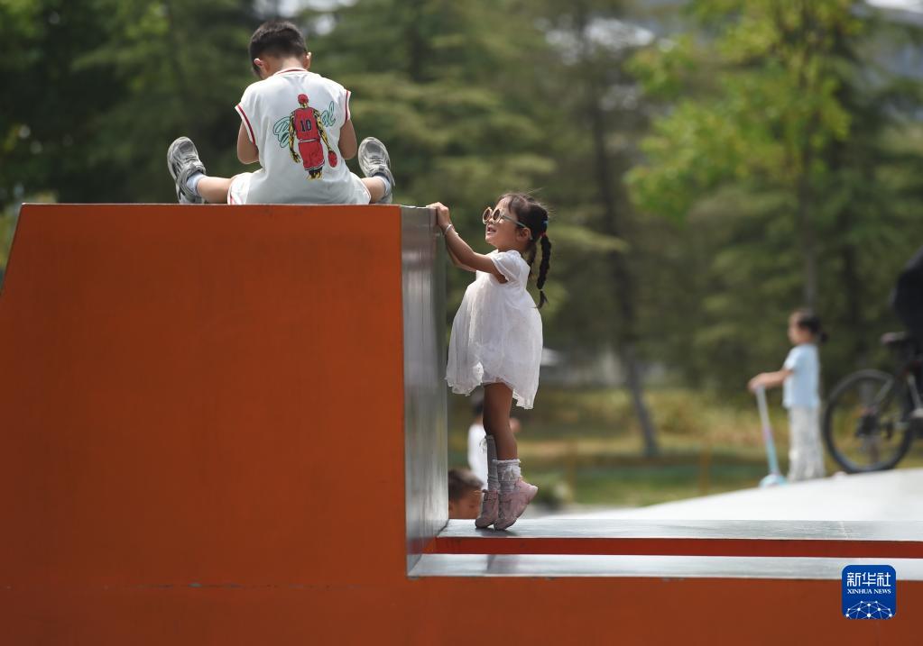 9月10日,小朋友們在安徽省合肥市綠軸公園玩耍。
