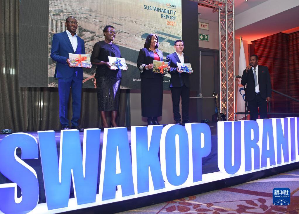 這是8月30日在納米比亞溫得和克拍攝的斯科公司報告發布會現場。