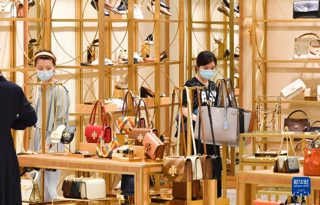 9月10日,游客在中免集團??谌赵聫V場免稅店選購免稅品。