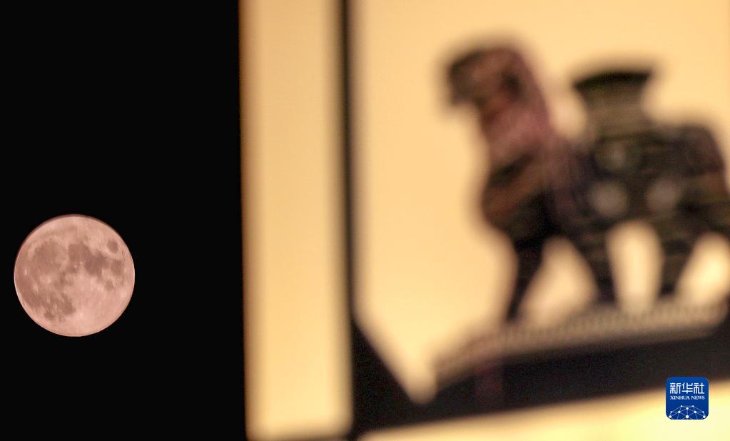 9月10日在河北省滄州市百獅園拍攝的明月。