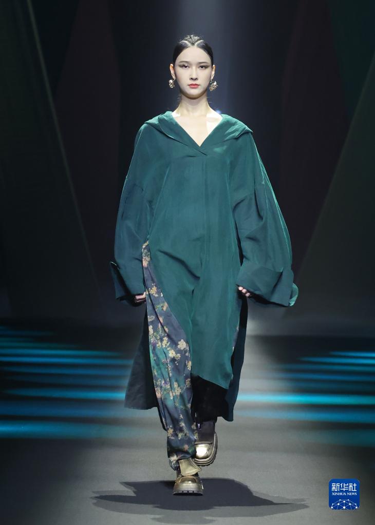 當日,“素白·馬乖”時裝發布會在北京中國國際時裝周(2023春夏系列)舉行。設計師推出50套用傳統“天然桑蠶絲織物”、具有古舊香云紗質感的環保面料等制作的時裝。